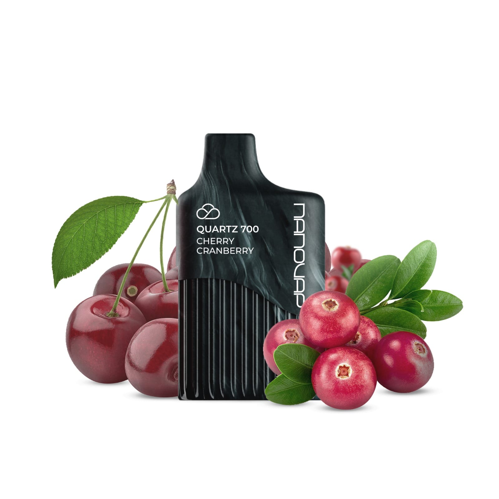 Cherry Cranberry Nanovap Quartz 700 combina la intensidad de la cereza con el toque ligeramente ácido del arándano, ofreciendo una experiencia frutal equilibrada y refrescante desde la primera calada. Su perfil de sabor es ideal para quienes buscan una mezcla con carácter, pero suave al paladar.